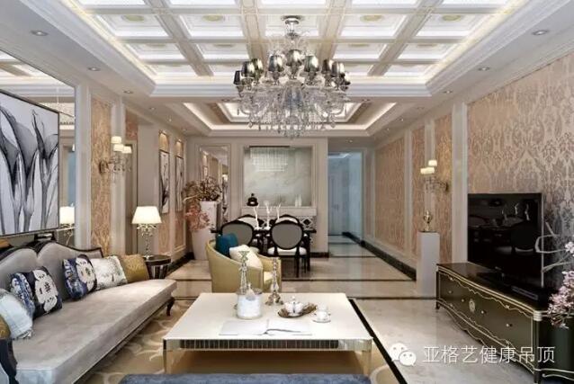 2、在风格上:亚格艺二级吊顶包含了现代,欧式,中式等不同风格,打破了石膏板一成不变的白色,不同风格的铝扣板,搭配各种不同的家装风格,以满足不同的家装需求。