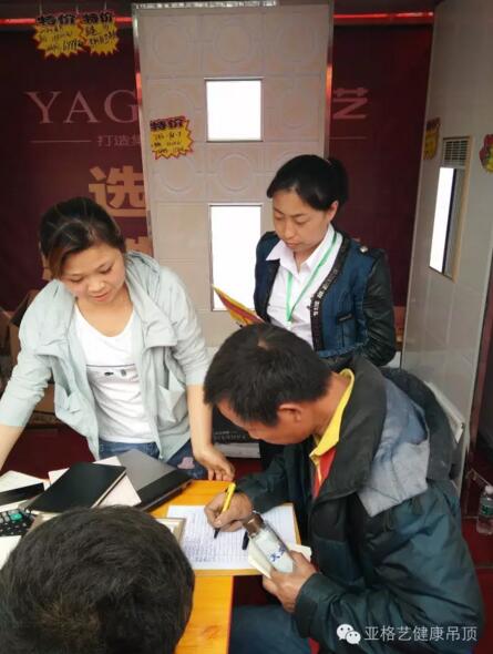 定制活动,最少一个月一场,选择亚格艺吊顶的业主都能切身的感到亚格艺品牌给他们带来很大的优惠。对亚格艺品牌非常满意和认可。