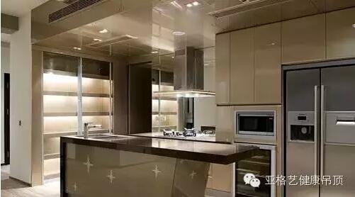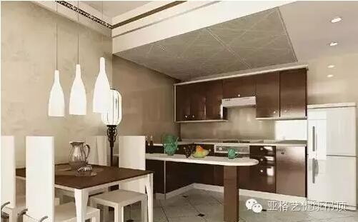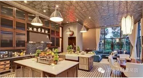 首先我们要承认大多数中国人的饮食习惯是,吃菜吃煎炒烹炸的,调料放酸甜苦辣的,不像西方人士以冷餐、煮餐、烤餐为主,那么厨房油烟问题将是个无法逾越的鸿沟,不管你家的吸油烟设备有多厉害也不可以百分之一百的避免。因此开放式厨房最好不要用石膏吊顶,不然一旦沾染了灰尘,油渍就很难再擦洗干净了。而且厨房顶部的温差变化大,很容易导致石膏顶的老化,从而发生脱落的危险。所以亚格艺小编一定要强调最好放弃使用石膏顶的念头。