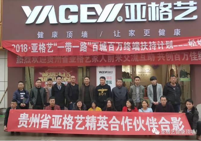 贵州省亚格艺家人汇聚松桃,石总亲自为每一个亚格艺顶墙专卖店出谋划策,排兵布阵,全力携手打造百城百万计划,做好“一带一路”方略!